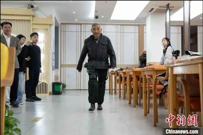 在杭州市西湖區留下街道居家養老服務中心,由杭州智元研究院研發的“髖部助行外骨骼”設備已開始試用。年過七旬的吳利英穿著該設備,一口氣從一樓走到三樓。她說,“腿上有一股助推力,感覺爬10樓也不打緊。”